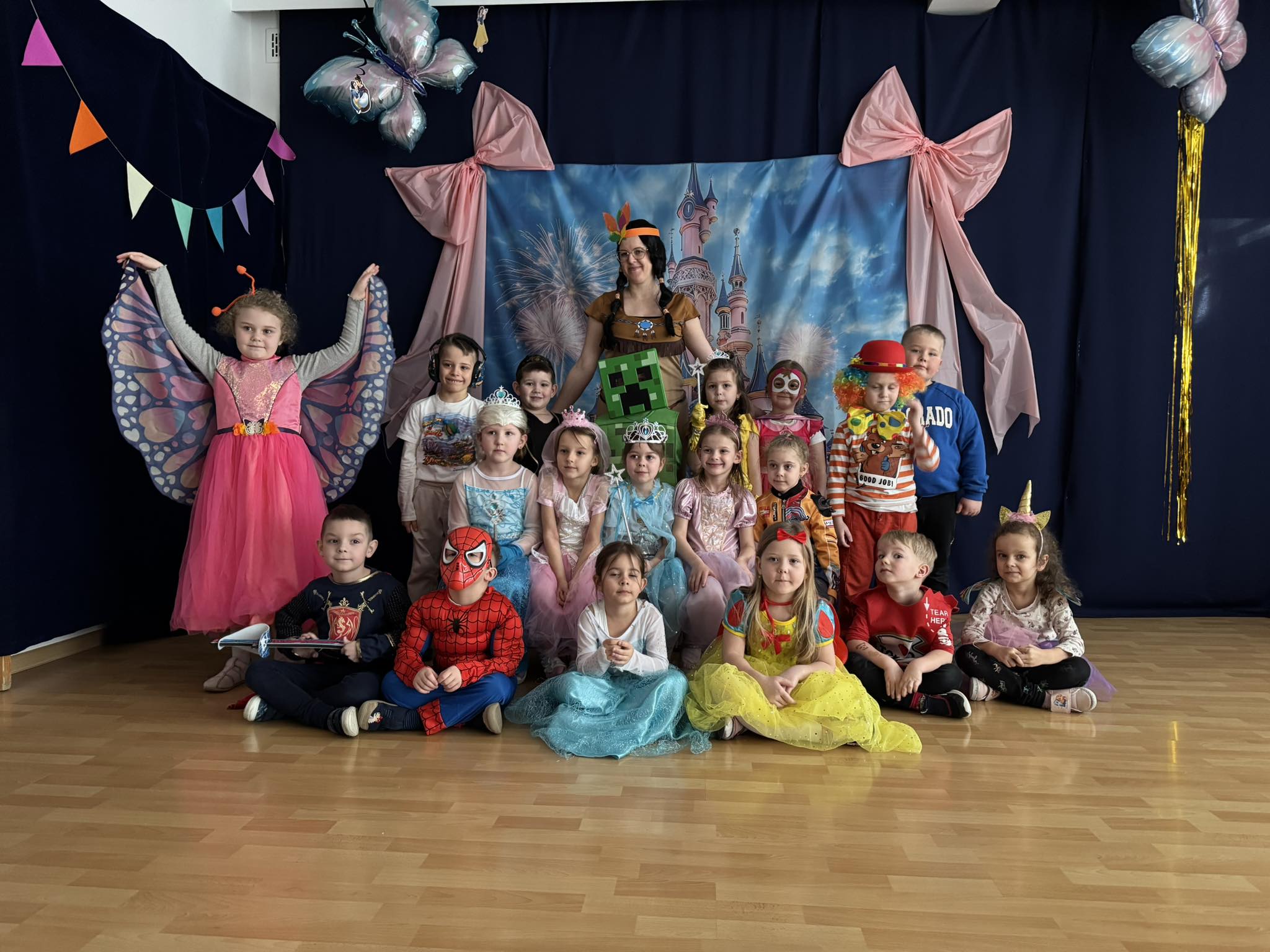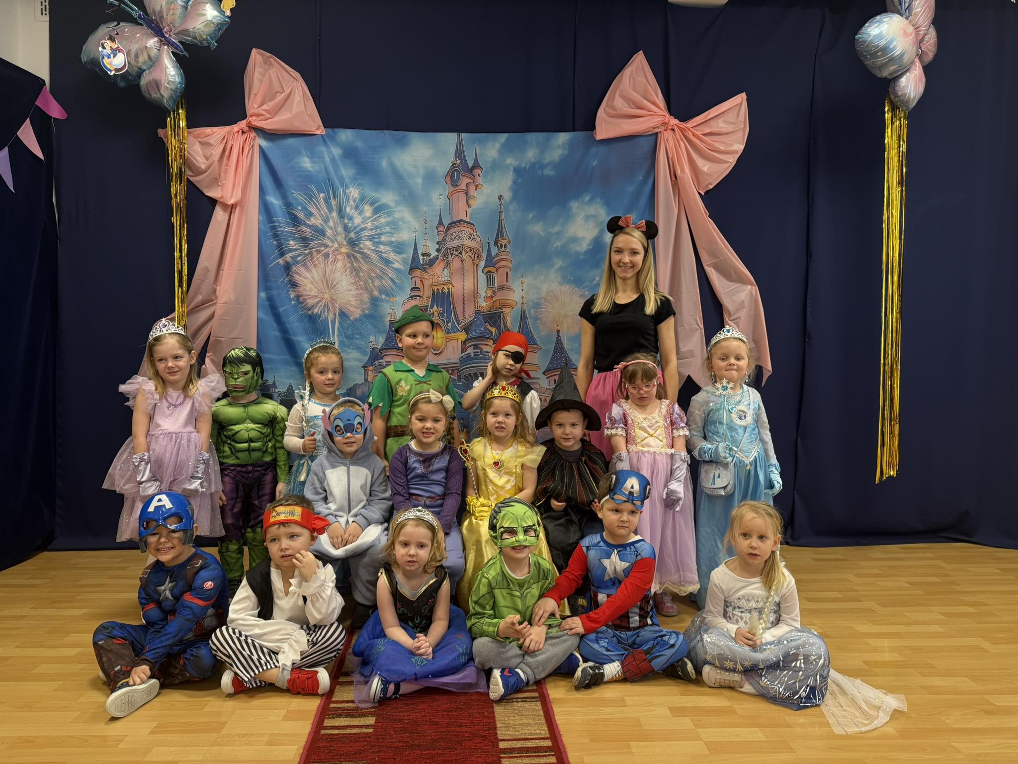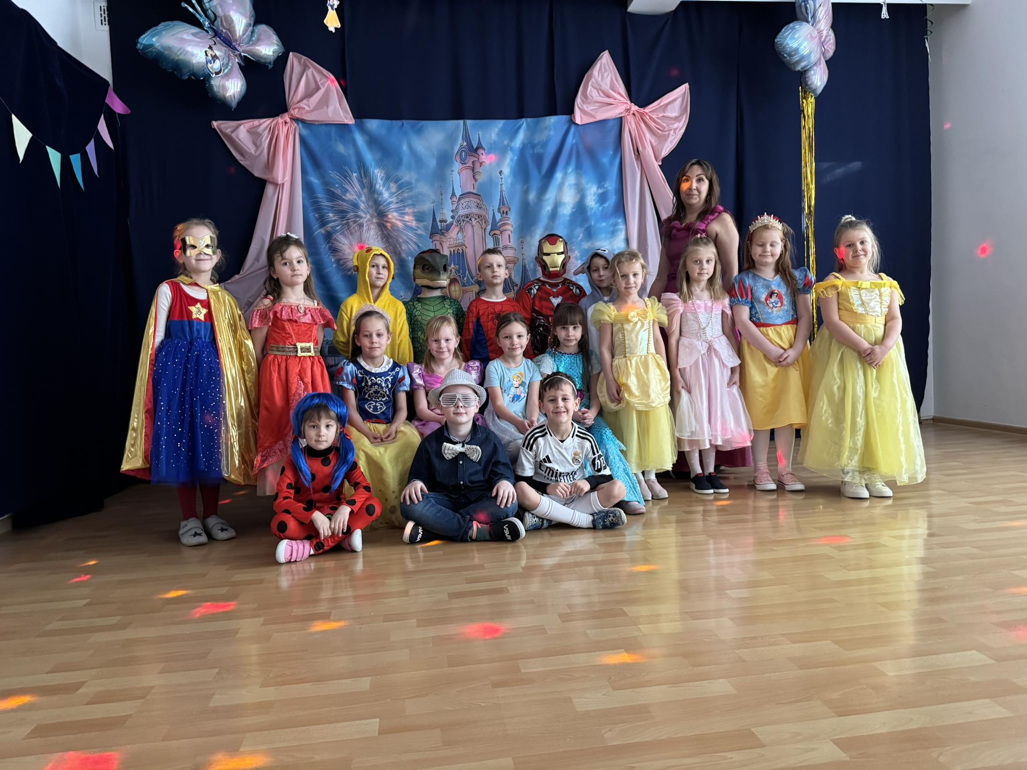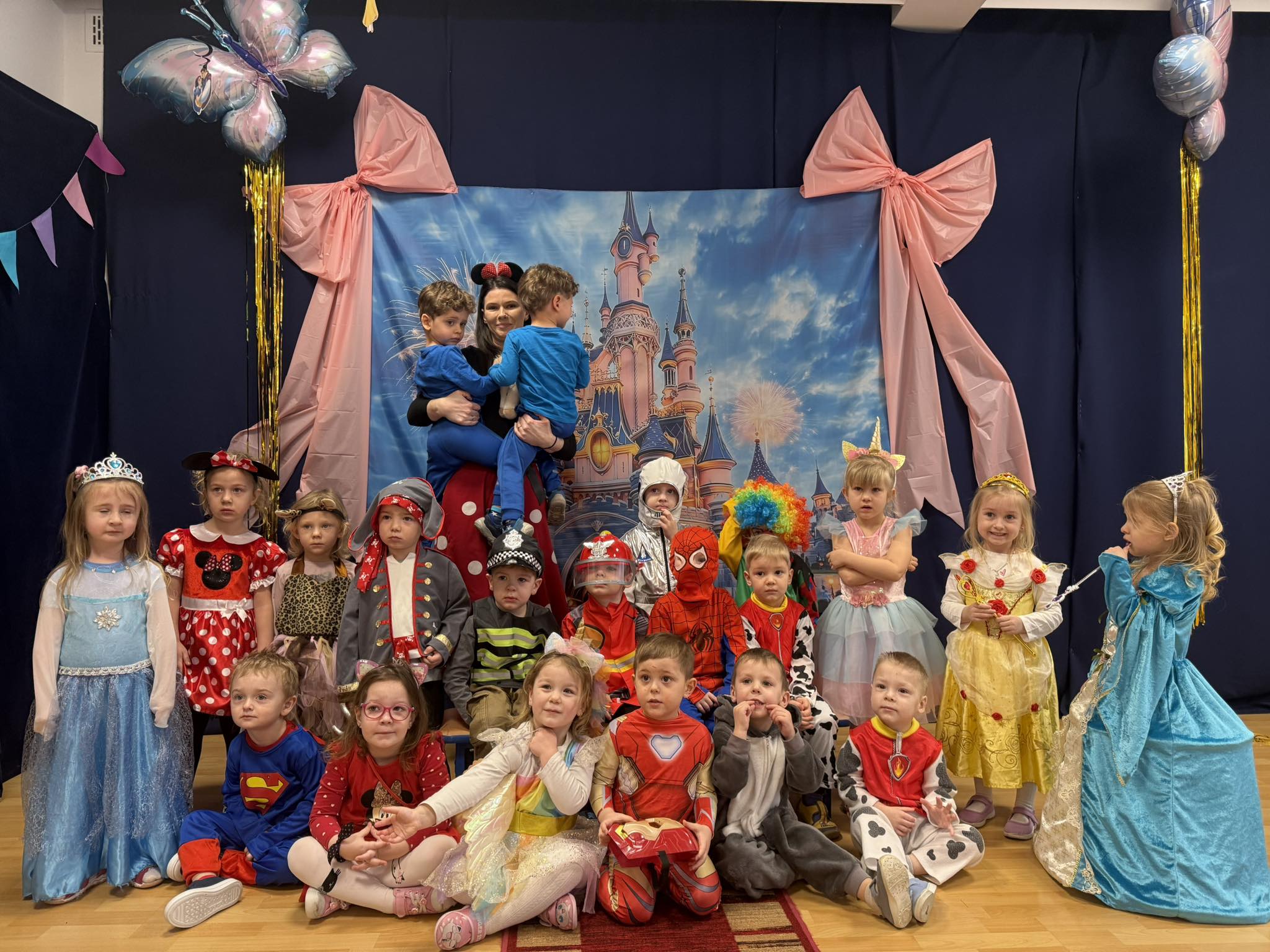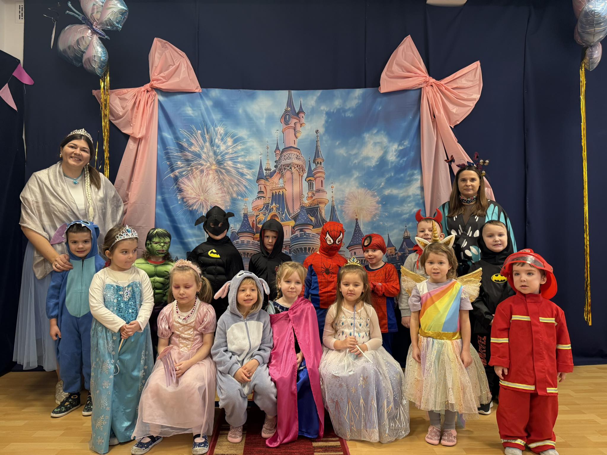 Nasze przedszkole zamieniło się w prawdziwą krainę magii – można było spotkać księżniczki, superbohaterów, wróżki, piratów i wiele innych bajkowych postaci. Wśród nich nie zabrakło bohaterów z takich klasyków jak Kraina Lodu, Król Lew, Zaplątani czy Toy Story.